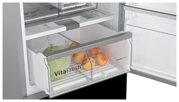 Холодильно-морозильная комбинация NoFrost с зоной свежести VitaFresh plus сохраняет свежесть продуктов до 2 раз дольше.